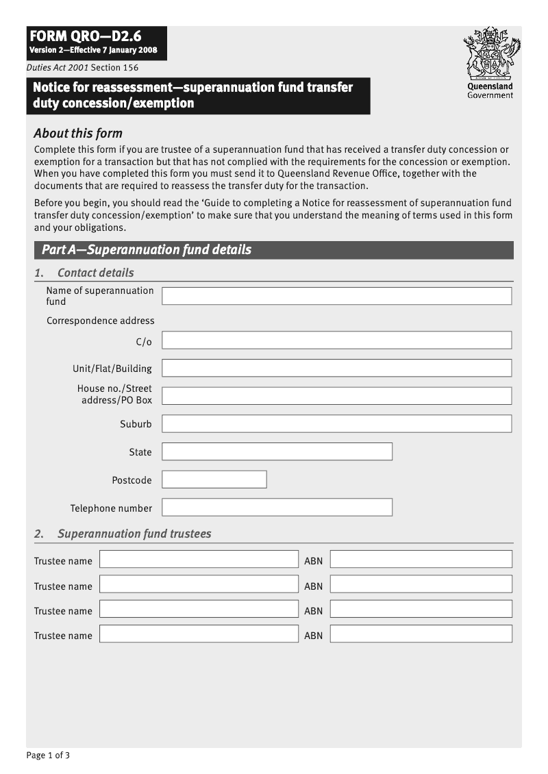 Notice for reassessment-superannuation fund transfer (Queensland Form QRO-D2.6)