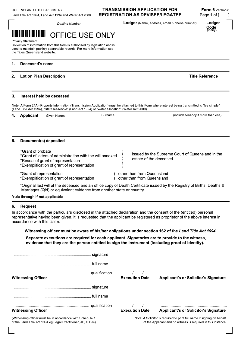 Transmission Application For Registration As Devisee/Legatee
