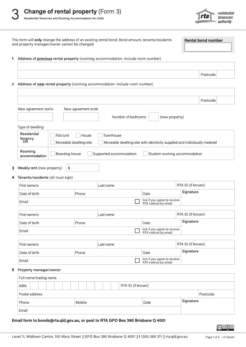 Change of rental property (Queensland Form 3)
