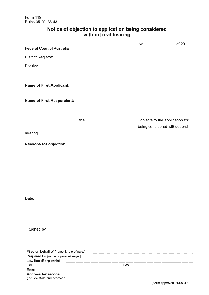 Notice of objection to application being considered without oral hearing (Rules 35.20; 36.43)