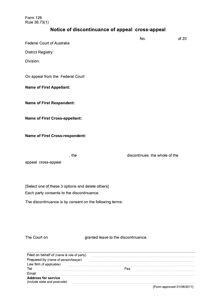 Notice of discontinuance (appeal / cross-appeal) (Rule 36.73(1))