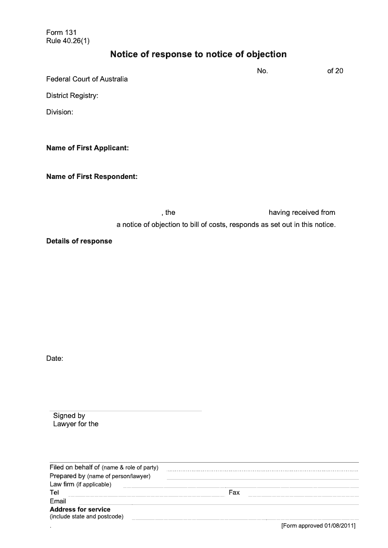 Notice of response to notice of objection (Rule 40.26(1))