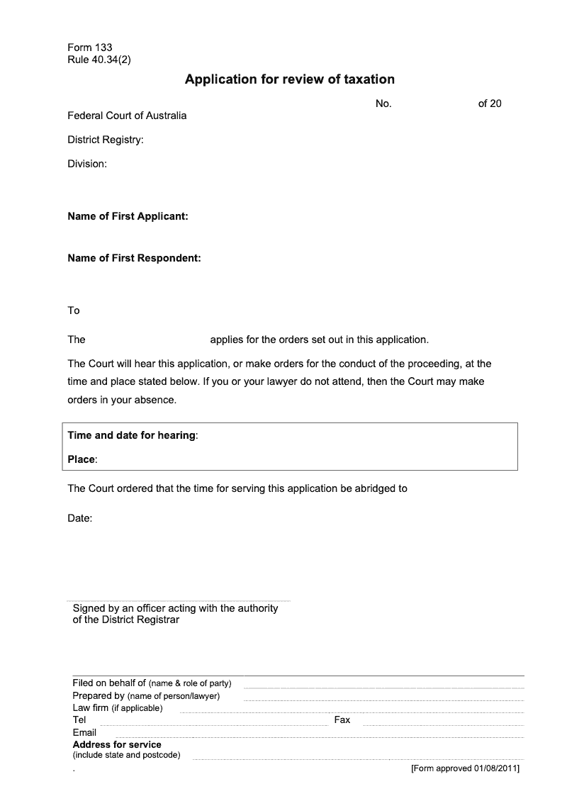 Application for review of taxation (Rule 40.34(2))