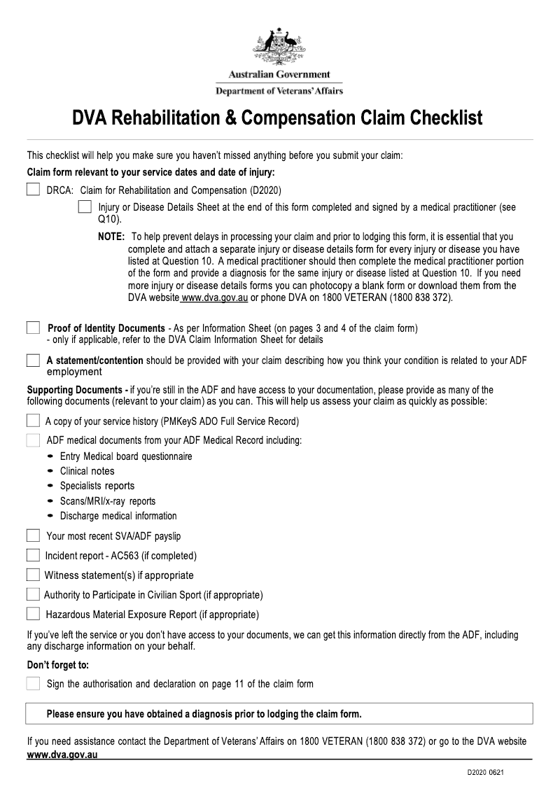 Claim for Rehabilitation and Compensation (Safety, Rehabilitation and Compensation (Defence-related Claims) Act 1988 (DRCA))