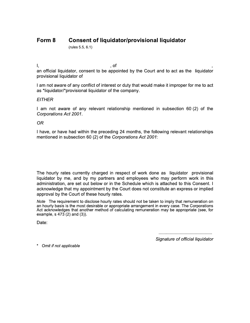 Consent Of Liquidator/Provisional Liquidator (Rules 5.5, 6.1)