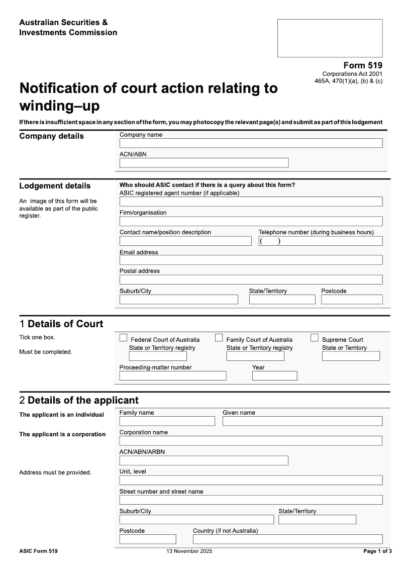 Notification Of Court Action Relating To Winding-Up (Corporations Act 2001 465A, 470(1)(a), (b) & (c))