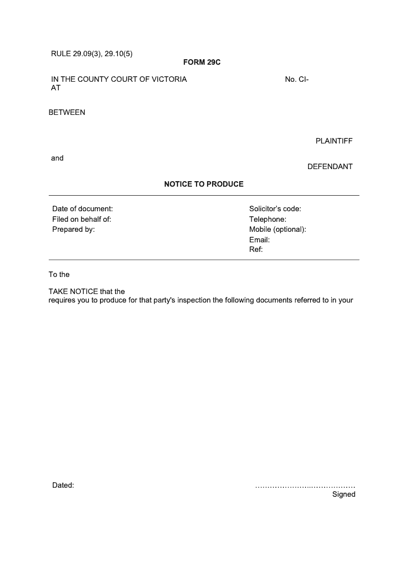 Notice to produce (Rule 29.09(3), 29.10(5))