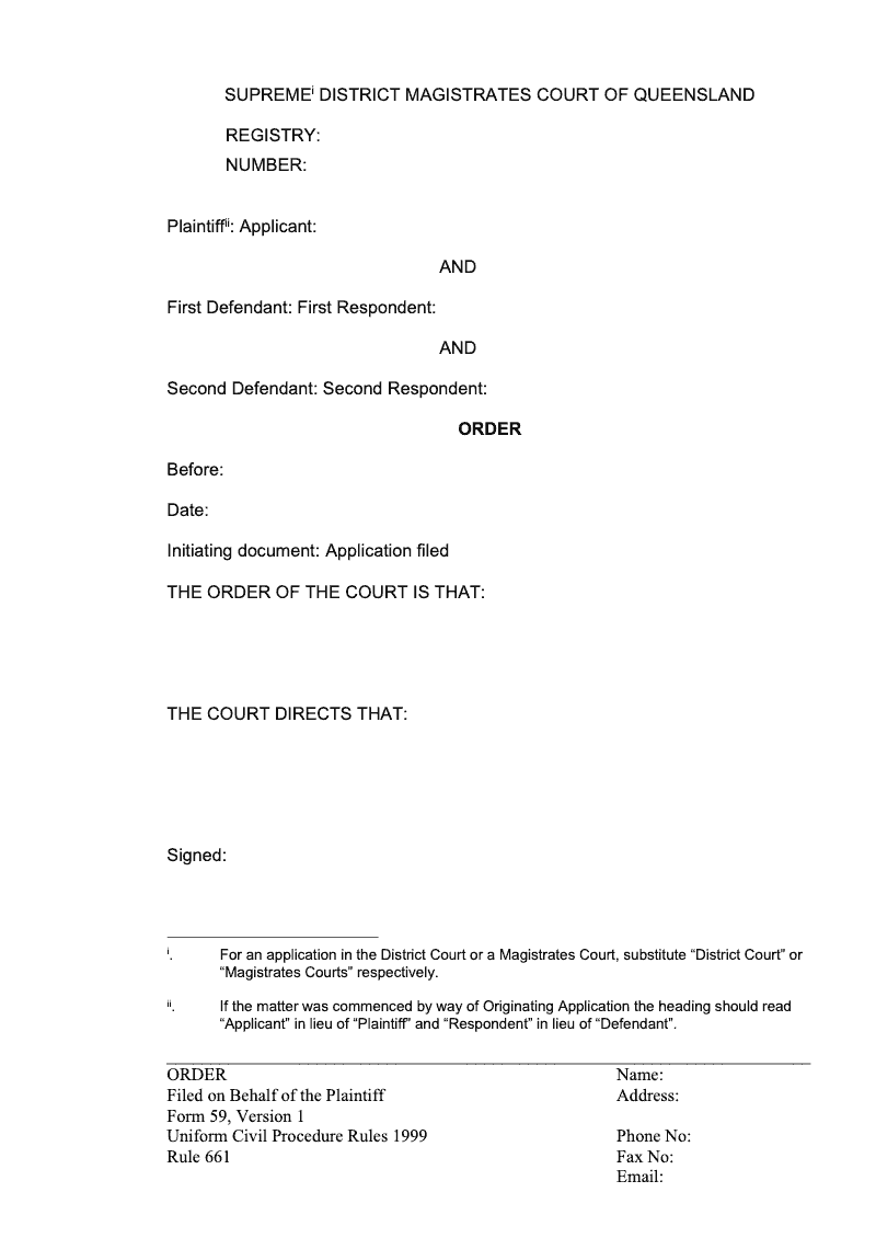 Order (Uniform Civil Procedure Rules 1999 Rule 661)