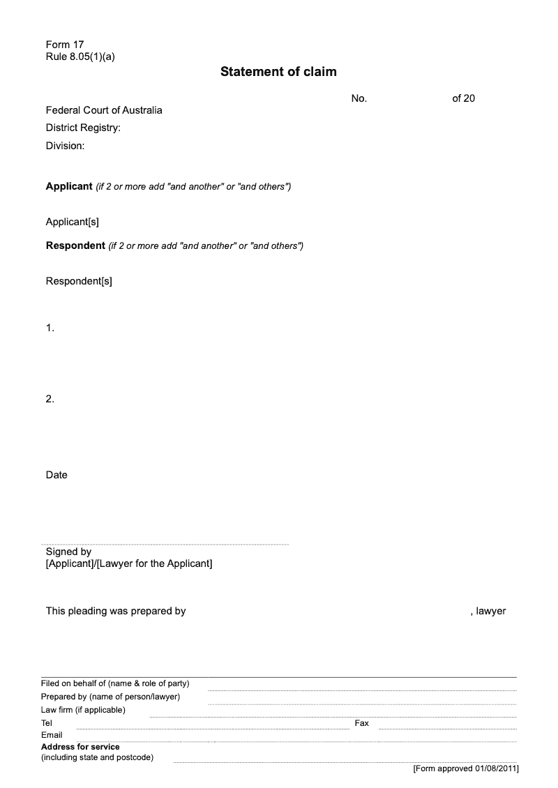 Statement of claim (Rule 8.05(1)(a))