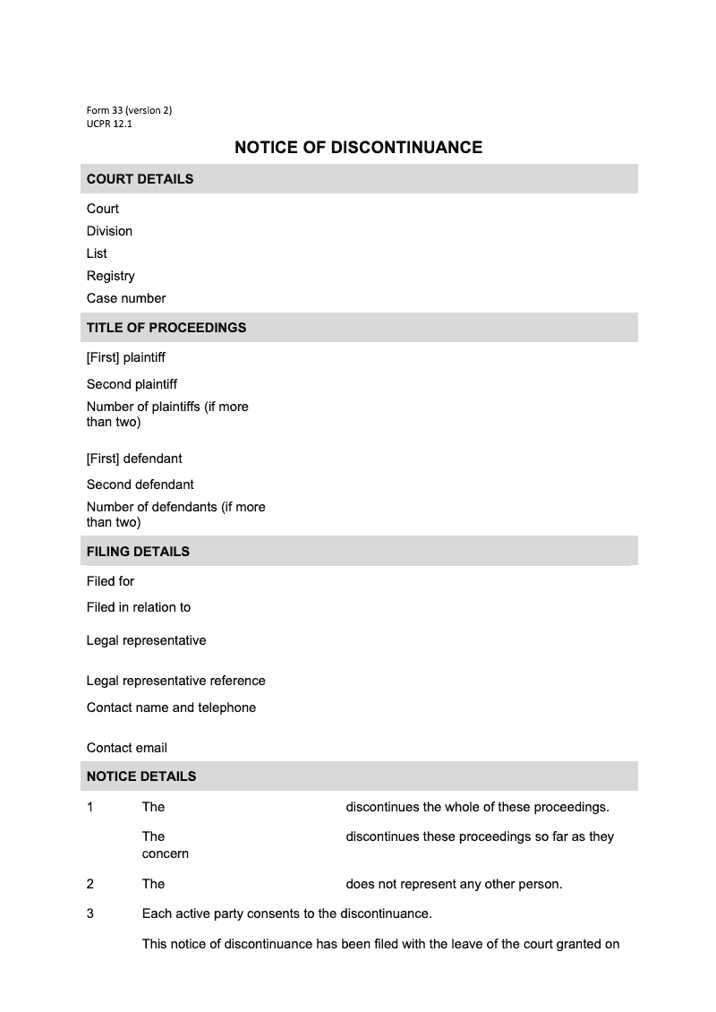 Notice of discontinuance (UCPR 12.1)