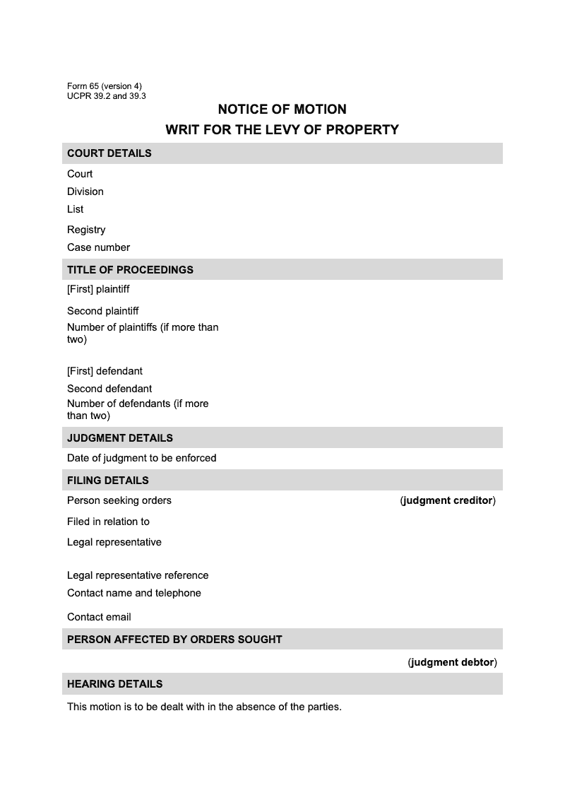 Notice of motion - writ for the levy of property (UCPR 39.2 and 39.3)