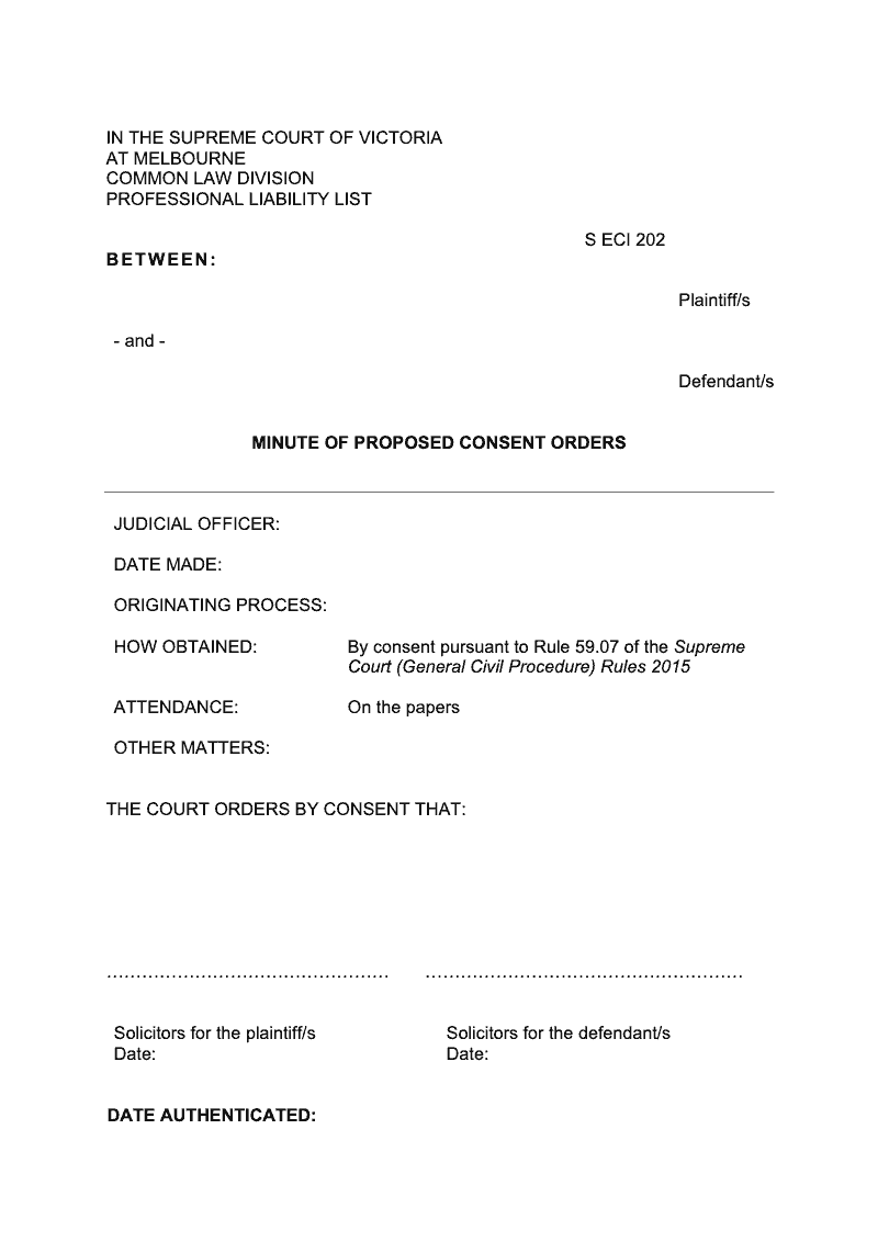 Proposed minutes of consent (For use in the Professional Liability List)