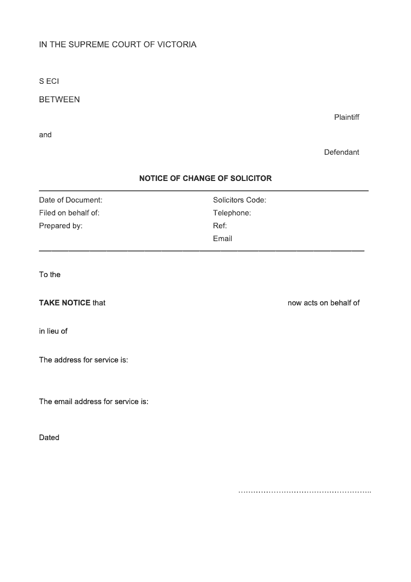 Notice of change of solicitor