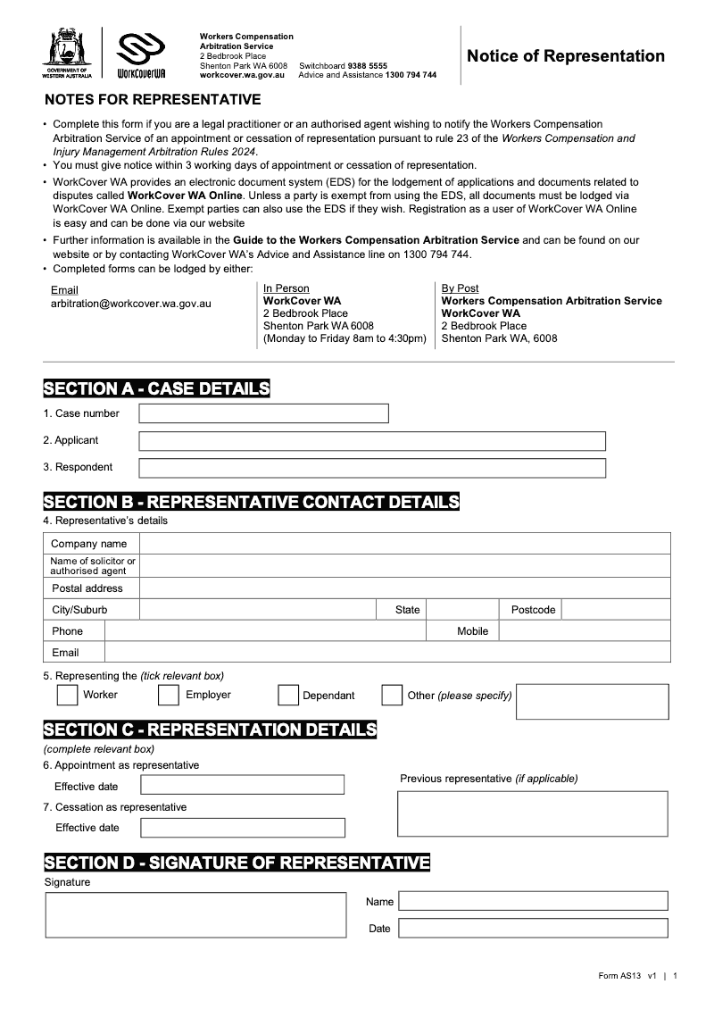 Notice of Representation