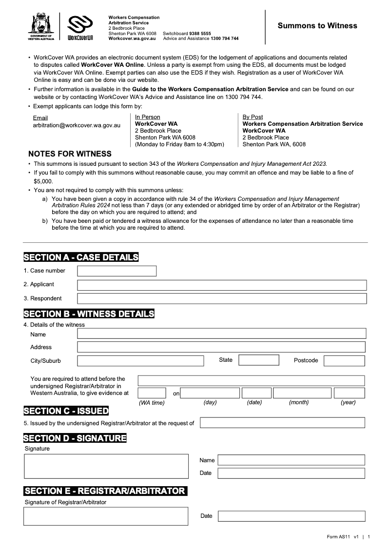Summons to Witness