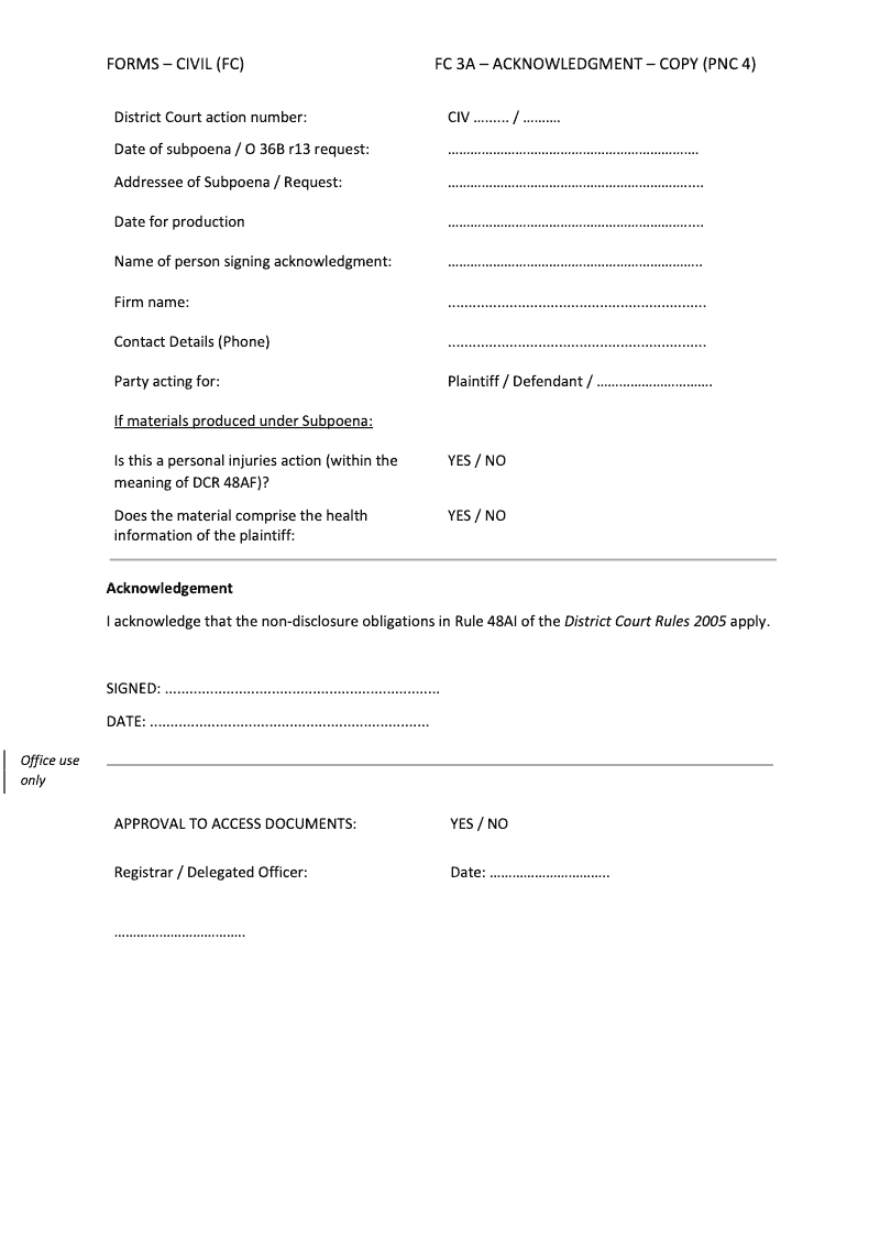 Subpoena Acknowledgment – Copy