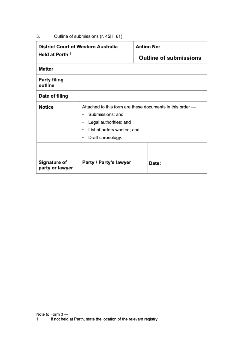 Outline of submissions (r.45H, 61)