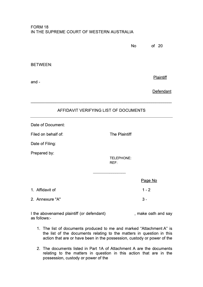 Affidavit Verifying List Of Documents
