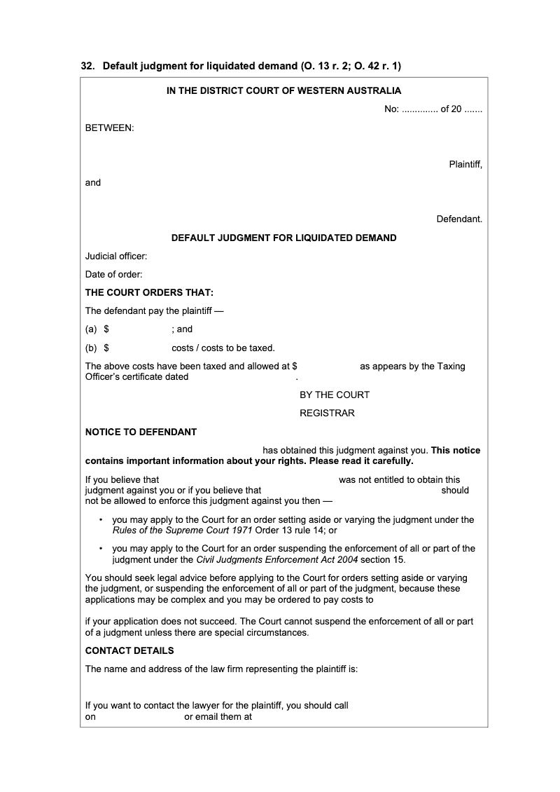 Default judgment for liquidated demand (O.13 r.2; O.42 r.1)