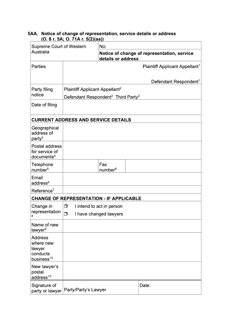 Notice Of Change Of Representation, Service Details Or Address (O. 8 r. 5A; O. 71A r. 5(2)(aa))