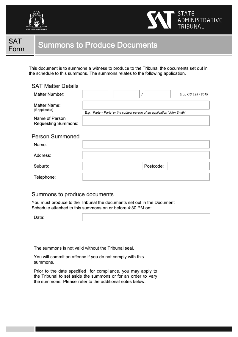 Summons To Produce Documents (State Administrative Tribunal)