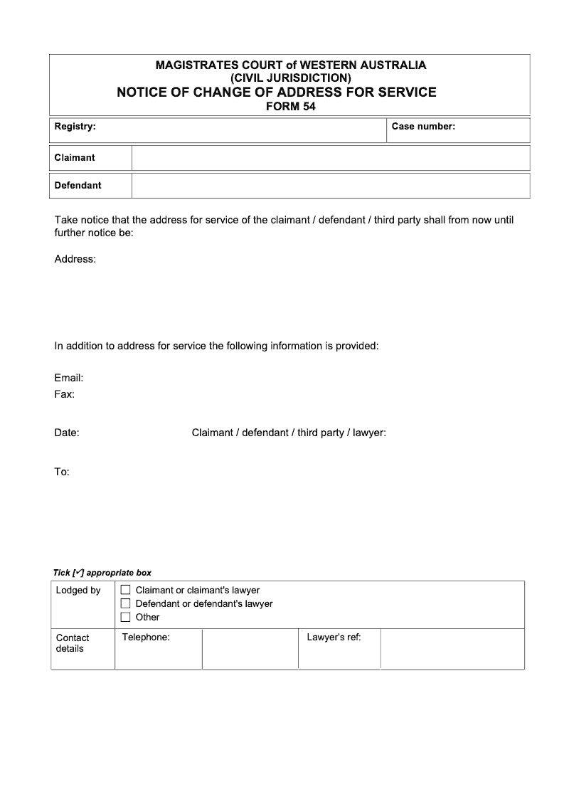 Notice of Change of Address for Service (Magistrates Court of Western Australia)